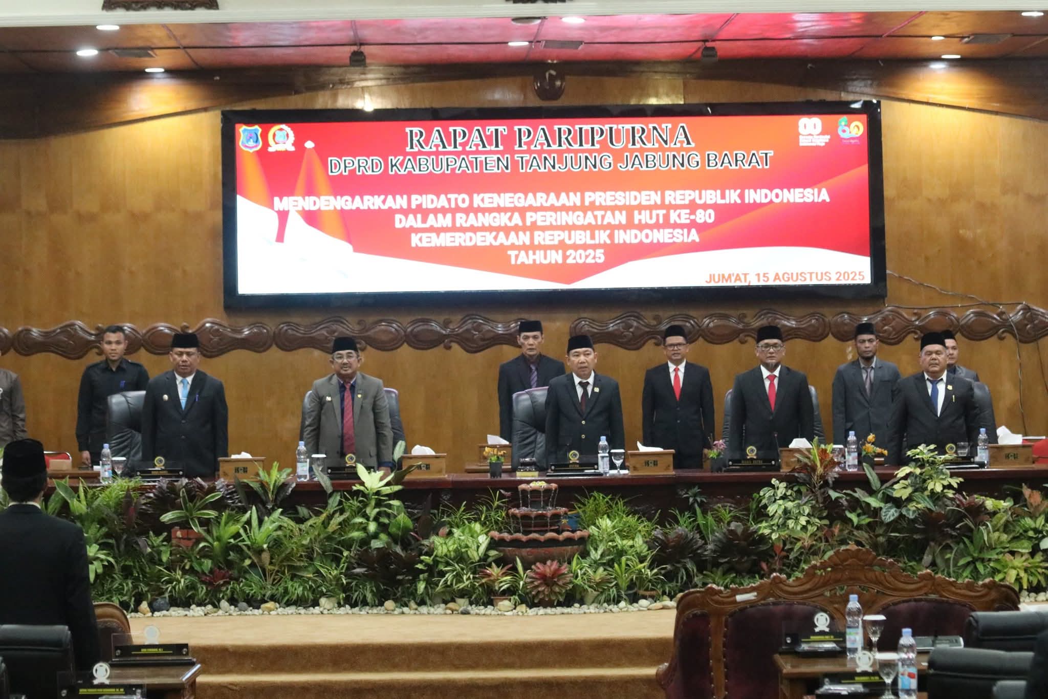 Ketua DPRD Tanjabbar, Hamdani, SE, menyampaikan bahwa momentum pidato kenegaraan ini menjadi pengingat bagi semua pihak untuk terus mengisi kemerdekaan dengan kerja nyata.