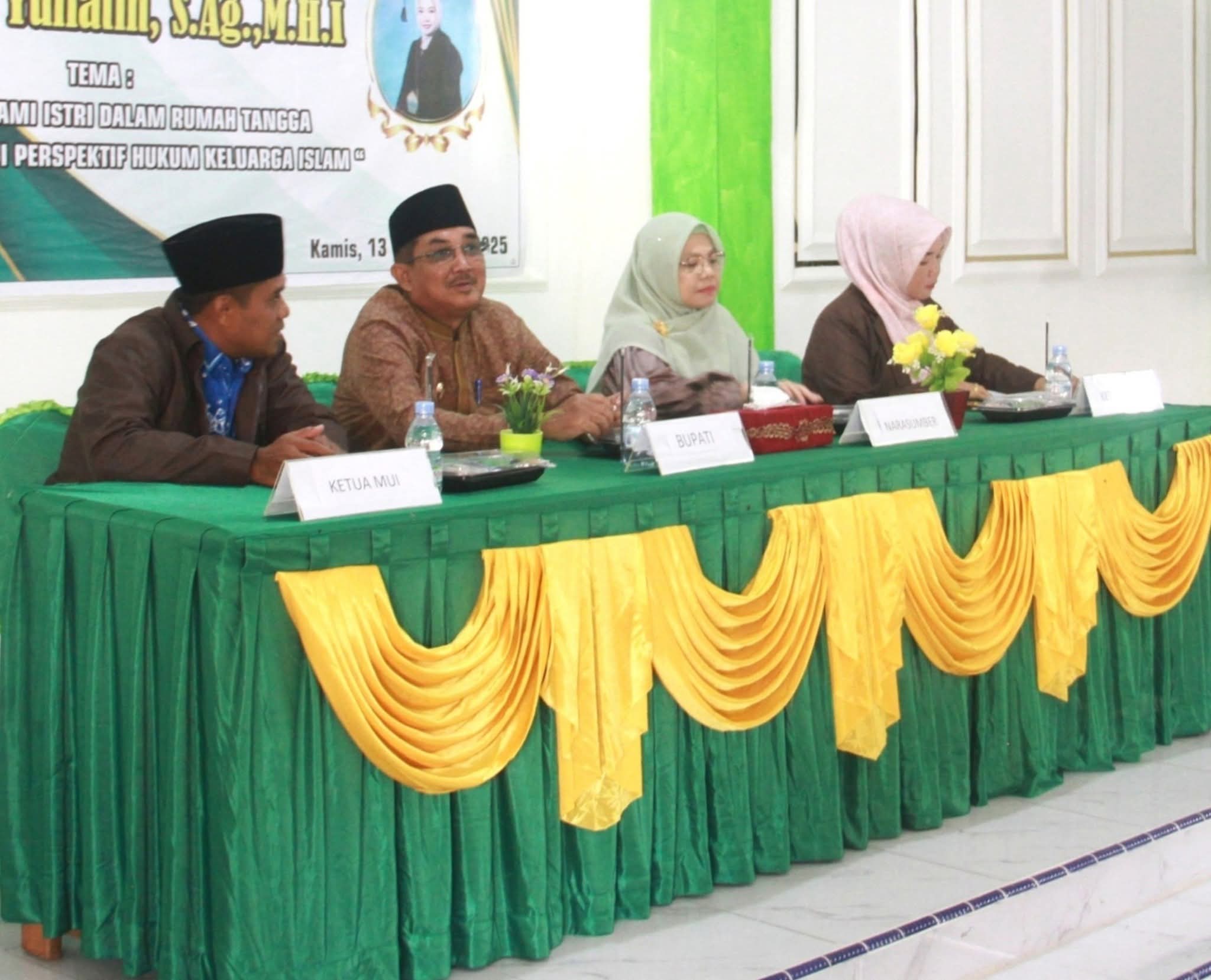Dalam sambutannya, Bupati Anwar Sadat menegaskan pentingnya keselarasan antara suami dan istri dalam membangun rumah tangga yang harmonis dan berlandaskan nilai-nilai Islam. Menurutnya, dalam perspektif hukum keluarga Islam, sinergi suami istri tidak hanya tentang pembagian peran, melainkan penyatuan visi dan misi kehidupan yang berpijak pada nilai-nilai sakinah, mawaddah, dan warahmah.