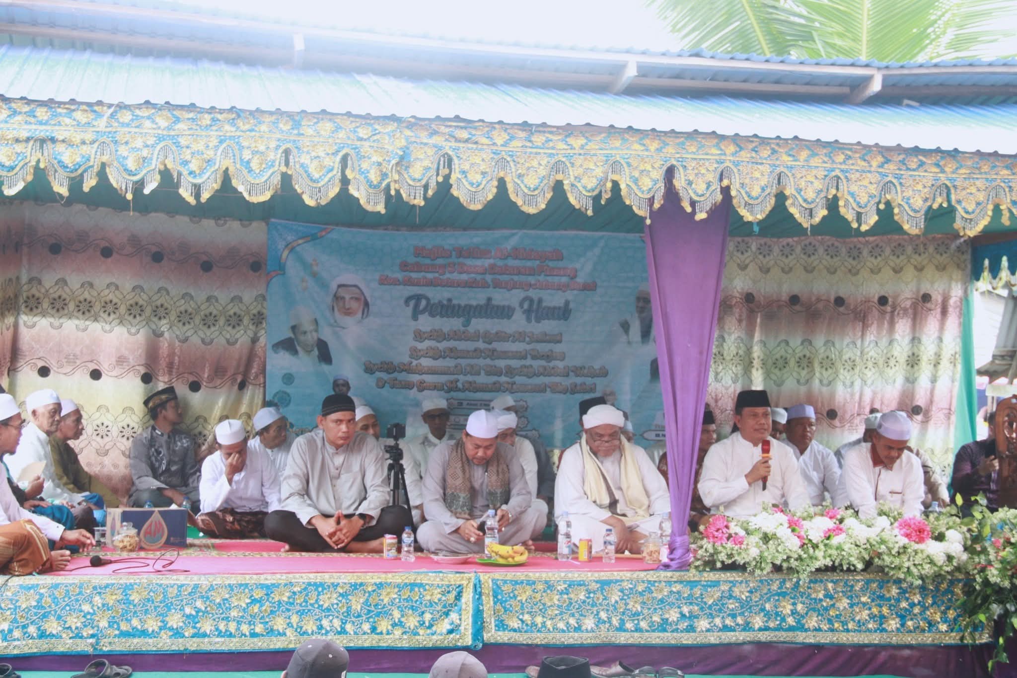 Turut hadir dalam kegiatan tersebut K.H. Ahmad Gazali, K.H. Fahruddin Nur, K.H. Abdul Hakim, S.Ag., Camat Kuala Betara, Kepala Desa Dataran Pinang, Kepala Desa Sungai Gebar, tokoh agama, tokoh masyarakat, serta para jamaah haul yang memenuhi area majelis dengan suasana penuh kekhusyukan dan rasa syukur. (Dim/*)
