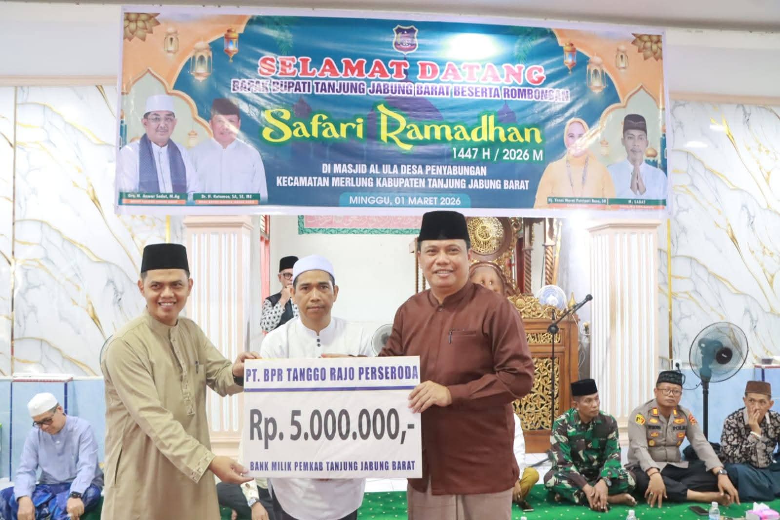 TANJAB BARAT, Medialapanenam.com – Pemerintah Kabupaten Tanjung Jabung Barat (Tanjab Barat), menggelar Safari Ramadan di Masjid Al-ULA, Desa Penyabungan, Kecamatan Merlung, Minggu (01/03/1026). Kegiatan ini menjadi ajang silaturahmi sekaligus penyampaian program pembangunan kepada masyarakat.