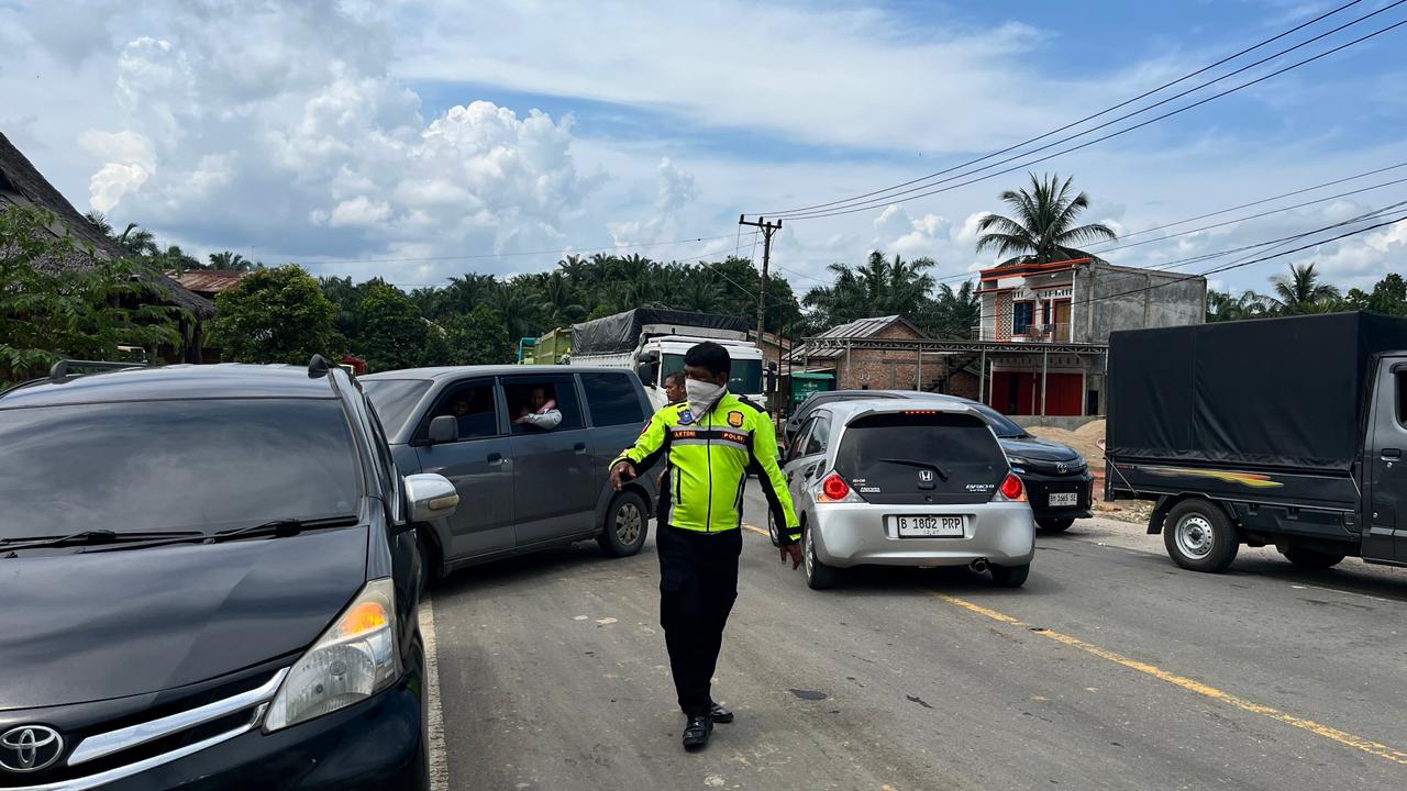 Guna mengurai kemacetan dan memastikan arus lalu lintas tetap berjalan, petugas di lapangan langsung melakukan sejumlah langkah strategis. Pengaturan lalu lintas (gatur) dilakukan secara intensif untuk menjaga kelancaran kendaraan yang melintas.